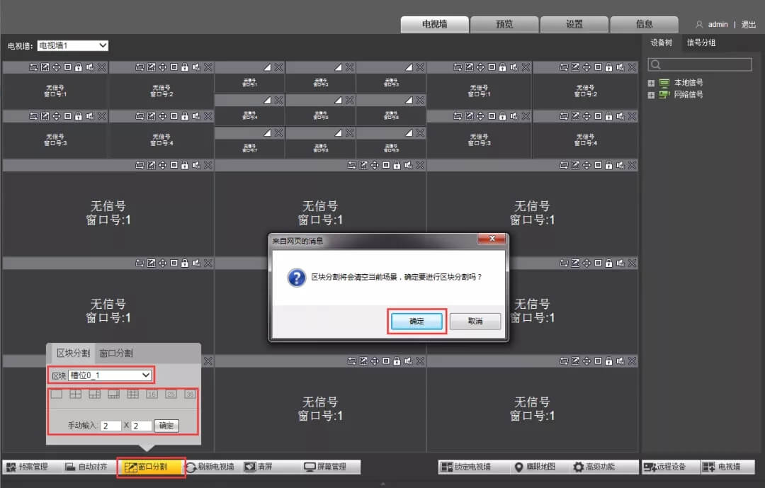 注:如果要新建电视墙,点击电视墙中的“+”,会弹出电视墙布局配置界面