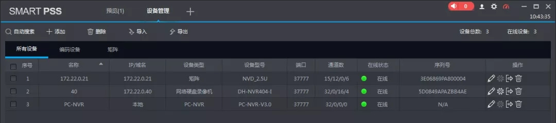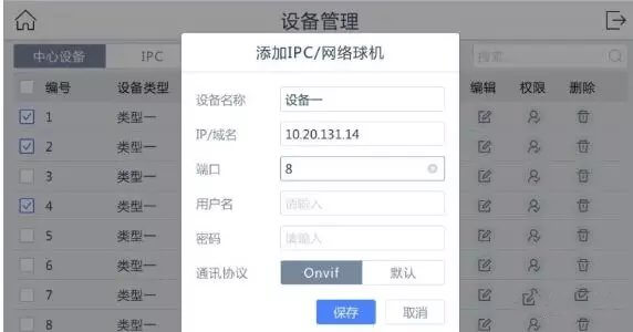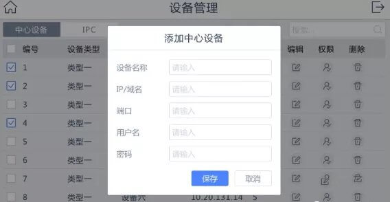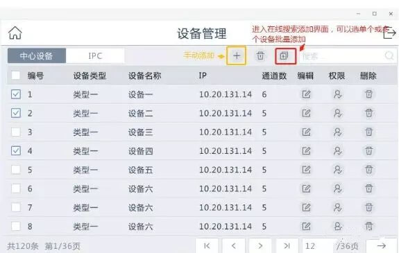 2、设备管理中添加设备。一般情况除了IPC设备都往中心设备里添加,且就算在IPC界面添加了个NVR或者解码器,v4.0版本也会自动归类到中心设备那里去的。这样方便很多。