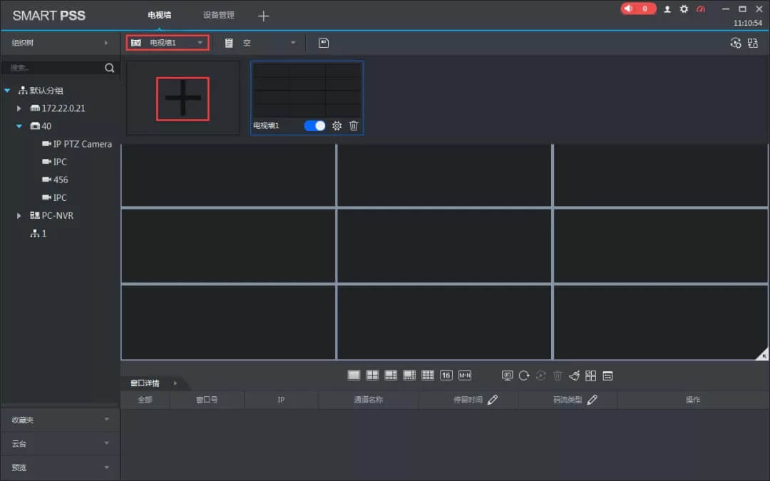 方式一:电视墙界面,点击正中间“+”图标进入电视墙配置