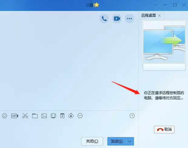 点击“请求控制对方电脑”选项后就会对该好友发送远程电脑控制请求指令。
